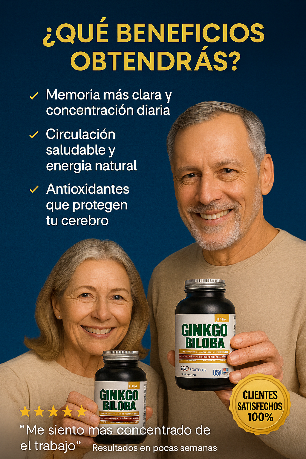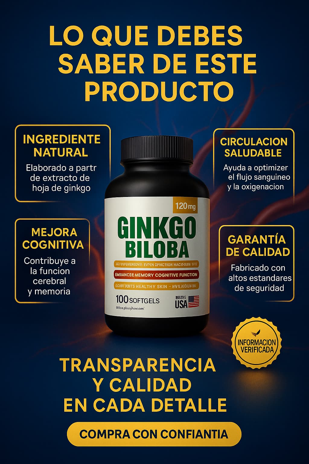 El Ginkgo Biloba es conocido principalmente por sus posibles beneficios para la salud cerebral y circulatoria. Se utiliza comúnmente para: